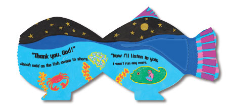 The fun book is about the incredible story of how Jonah ends up in the stomach of a fish.
