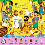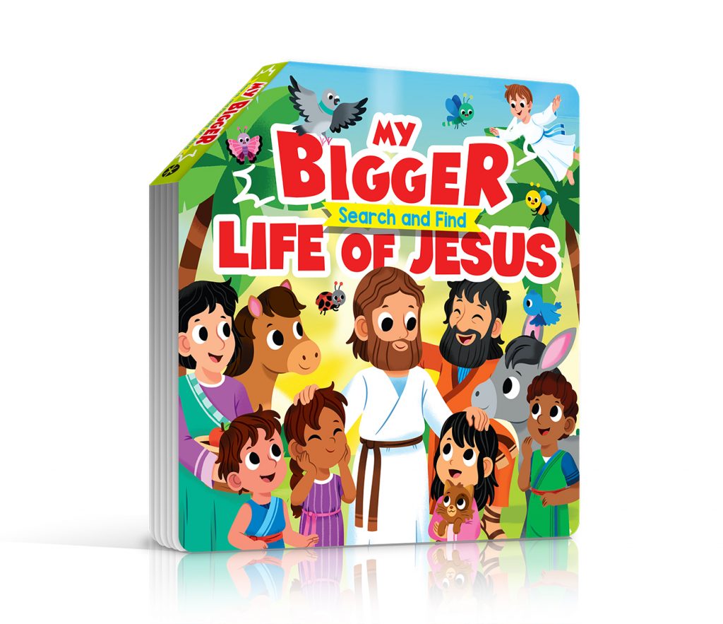 This colorful Search and Find book about the Life of Jesus gets much BIGGER once you open it. The book is made to “fold-out” and each page opens to an image almost 4 times the size of a single-page.