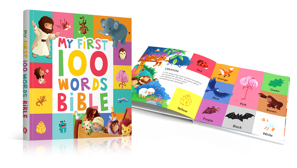 Perfect for ages 0–2, My First 100 Animals Bible is designed to help toddlers learn first words while discovering the wonders of God’s Word.
