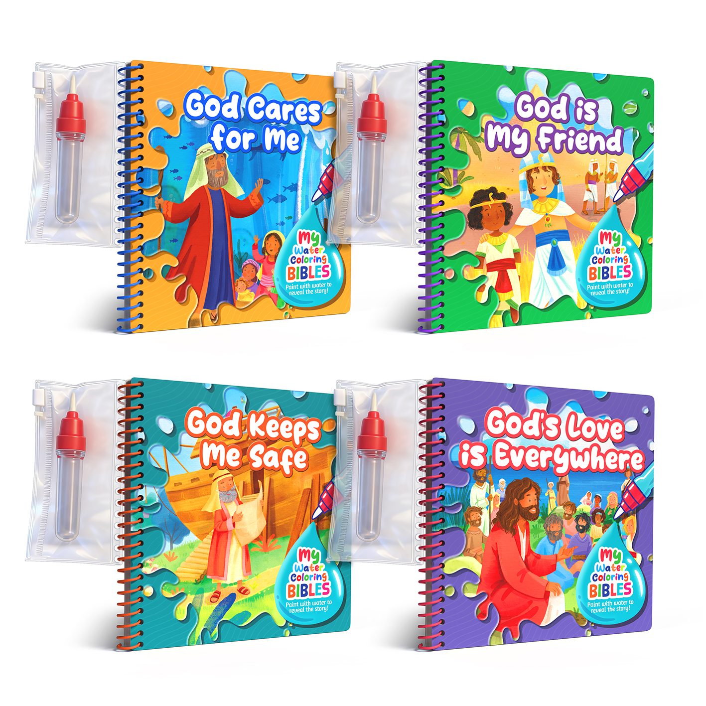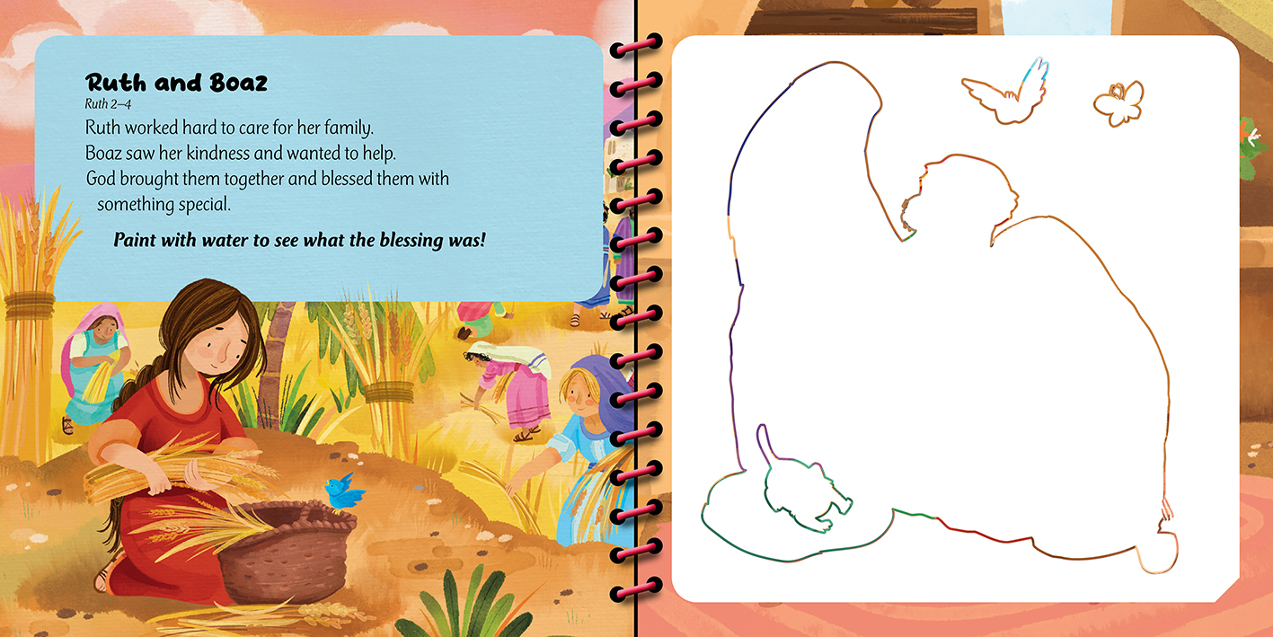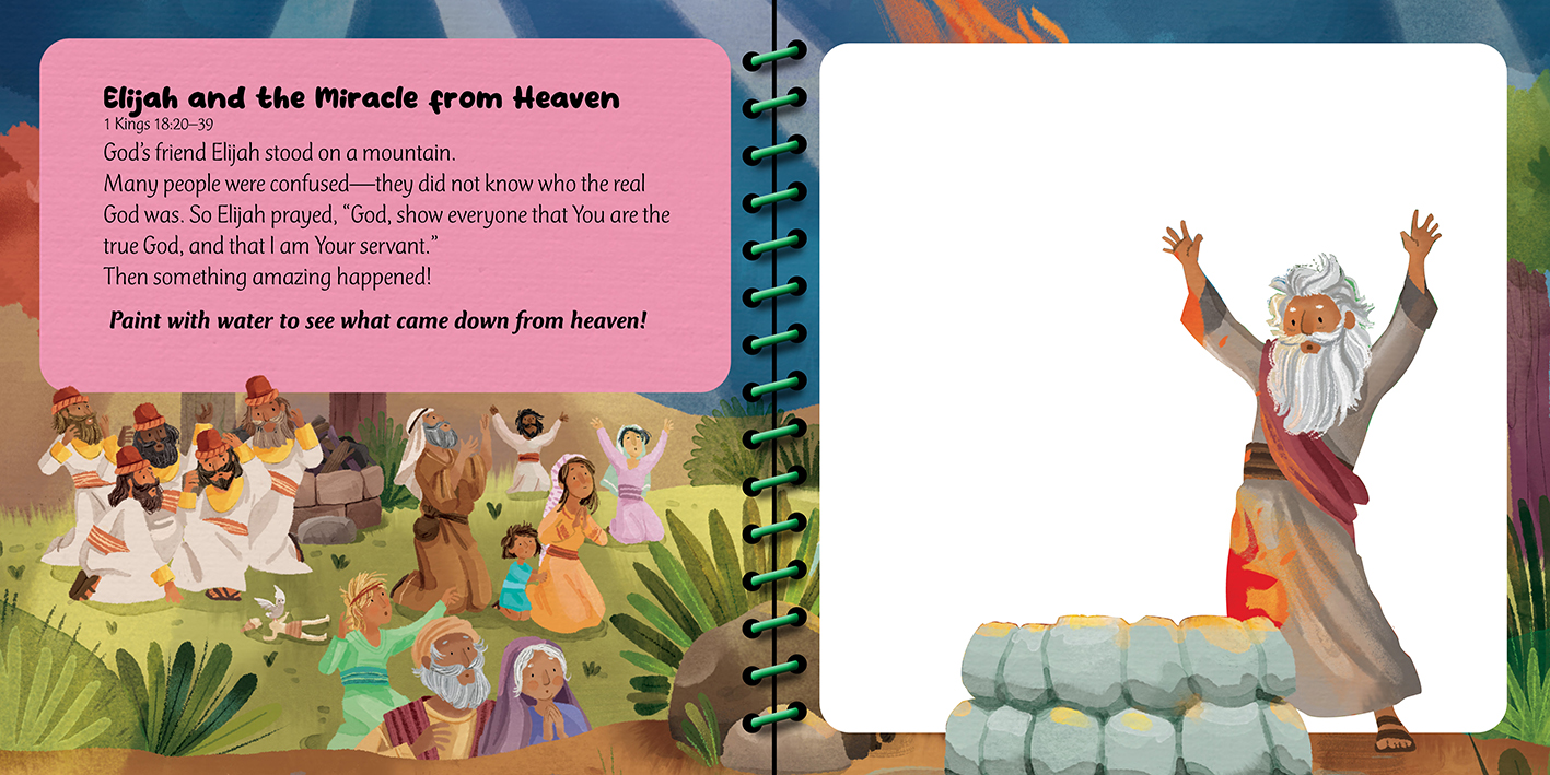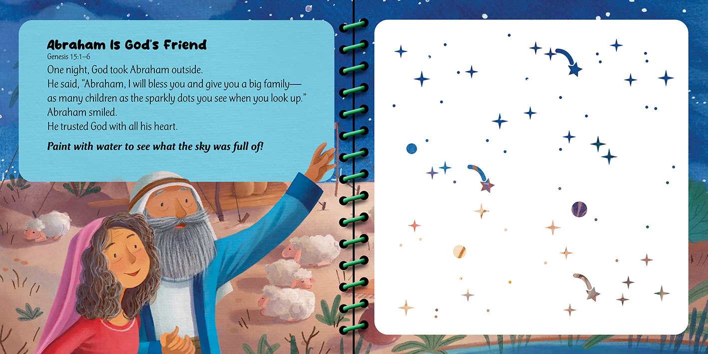 Each book includes five short Bible stories paired with interactive paint-with-water scenes that help children explore God’s Word through play.
